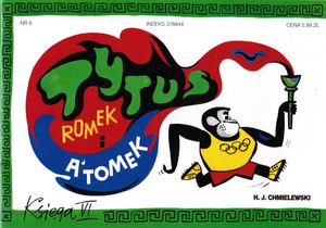 Romek i A'Tomek postanawiają wystawić Tytusa do zawodów olimpijskich, w tym celu trenują go w różnych dziedzinach sportu; pojazd ─ Trąbolot. [lubimyczytac.pl].