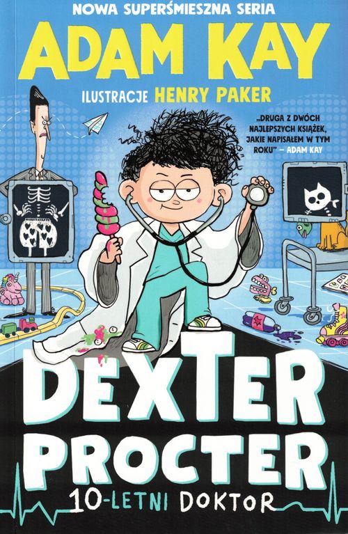 Od najmłodszych lat było wiadomo, że Dexter Procter jest inny niż wszyscy. Dexter zaczął mówić już po czterech sekundach od swoich narodzin. W wieku trzech lat miał za sobą już 87 zdanych matur na poziomie rozszerzonym – od języka afrikaans aż po zoologię. Jak dziesięciolatek rozpoczął pracę na stanowisku pediatry w szpitalu Lilydale. Mimo kochającej (choć czasem lekko irytującej) rodziny oraz dwojga dobrych przyjaciół (Rupi oraz Ottona) Dexter zawsze miał problem z wpasowaniem się w środowisko. Zmaga się też ze swoim śmiertelnym wrogiem (doktorem Drakiem) i dość poważnym incydentem w szkole (wszyscy nauczyciele cierpią na paskudny przypadek biegunki) – czy Dexterowi uda się zachować posadę, uratować szkołę i odnaleźć swoje miejsce? (Spoiler: tak!). Oto rozśmieszająca do łez historia o najmłodszym lekarzu na świecie napisana przez znanego i lubianego Adama Kaya i ozdobiona niezwykłymi ilustracjami Henry’ego Pakera! [wydawca]