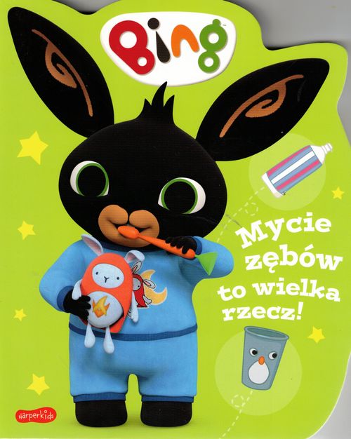 Mycie zębów to wielka rzecz, ale nie wszyscy to lubią. Ta prosta kartonowa książka o ciekawym kształcie przekona maluchy do regularnego, codziennego szczotkowania zębów. Razem z Bingiem nauczą się tego krok po kroku, od nakładania pasty na szczoteczkę (nie za dużo, Bing!), aż po wypłukanie buzi. W książce jest wszystko, co uwielbiają dzieci. Proste, zrozumiałe i zabawne teksty zostały napisane przyjaznym, choć nie infantylnym językiem. Towarzyszące im wyraźne, kolorowe ilustracje z Bingiem i jego przyjaciółmi przykują uwagę tych maluchów, które nie umieją jeszcze czytać. Prościutka historia, w której czytelnik towarzyszy Bingowi w jego codziennych czynnościach, pozwoli najmłodszym utożsamić się z głównym bohaterem, a dla rodziców może być ciekawym punktem wyjścia do rozmów z dzieckiem o jego sprawach. Zaokrąglone rogi zapewnią bezpieczeństwo podczas zabawy, a wyjątkowo wytrzymały karton sprawi, że książka będzie służyć dziecku długo, nawet jeśli będzie chciało czytać ją w łazience podczas… mycia zębów. Dzięki dużym literom książkę można wykorzystać jako pomoc w nauce czytania, a dorośli znajdą w niej inspirację do tego, jak skutecznie namawiać maluchy do czyszczenia zębów. [wydawca]