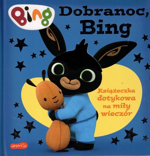 Dobranoc, Bing : książeczka dotykowa na miły wieczór / [adapted from the original books by Ted Dewan]. - Wydanie pierwsze. - Warszawa : Harperkids, 2024. - [12] stron : ilustracje ; 22x22 cm.
