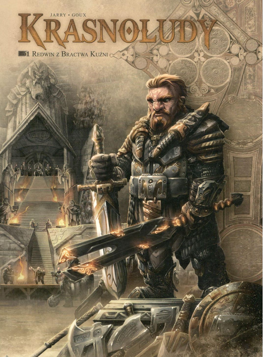 „Krasnoludy” to kolejna z bestsellerowych na rynku francuskim serii, która rozgrywa się w Akwilonie – jednym z największych komiksowych uniwersów fantasy. Akcja tej opowieści, podobnie jak fabuły cykli „Elfy”, „Orki i gobliny” i „Magowie”, jest umieszczona w krainie Arranii, natomiast akcja najnowszej z serii, zatytułowanej „Ziemie Ogona” – w krainie Ogonii. W chwili obecnej cykle ze świata Akwilonu liczą łącznie ponad osiemdziesiąt albumów! Tom pierwszy opowiada o Redwinie, niepokonanym w dziesiątkach pojedynków największym z krasnoludzkich wojowników. Teraz czeka go walka, która zdecyduje o przyszłości krain napadniętych przez hordy ożywionych trupów. Redwin wspomina swoją trudną i pełną goryczy drogę na szczyt sławy. Ma już dość przelewania krwi, czy znajdzie więc siłę na stawienie czoła przerażającemu wrogowi? [lubimyczytac.pl]