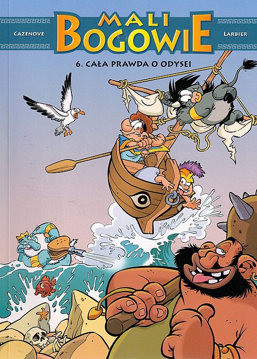 Szósty album szalonych i śmiesznych przygód kandydatów na bogów i herosów starożytnego Olimpu. Odyseusz przyjmuje wyzwanie Posejdona: jeśli zdoła odbyć daleką wyprawę, bóg mórz uczyni go największym żeglarzem wszech czasów. Tak rozpoczyna się Odyseja – niebezpieczna podróż po wodach pełnych niebezpieczeństw i potworów. Odyseusz wyrusza w towarzystwie przyjaciela Tauruska, ale przecież ich znamy – nie są geniuszami ani dzielnymi herosami... Na szczęście będzie ich wspierać Atena, początkująca bogini wojny. Autorami historii o psotnych istotach z mitów są scenarzysta Christophe Cazenove, znany w Polsce między innymi z bestsellerowej serii „Sisters”, oraz rysownik Philippe Larbier, który stworzył ilustracje do takich humorystycznych opowieści jak „Chats, chats, chats” czy „Nina” oraz scenariusz kryminalnego cyklu dla dzieci „Les Enigmes de Léa”. [nota wydawcy]