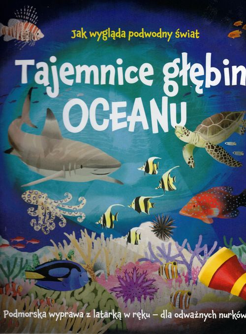 To wspaniała książka dla odważnych nurków, odkrywców oceanicznej głębi, którzy nie boją się zanurzyć w podwodnym świecie z latarką w ręku i chcą eksplorować głębiny, do których nie dociera nawet światło! Wypchnij dołączoną do książki kartonową ?latarkę?, weź ją do ręki i wsuń między arkusz folii a stronę znajdującą się obok. Zobaczysz, jak niesamowicie wyglądają głębiny oceanu. Zaciemnione strony w tej książce ukrywają fascynujące zwierzęta. Oceany, morza strefy podbiegunowej, australijska rafa koralowa, kalifornijski las wodorostów, tajemnicze wraki statków? ? każda scena pokazuje inny obszar podwodnego świata. Wystarczy przesunąć latarką, aby rzucić światło na żyjące tam wspaniałe stworzenia. Czy udało ci się wypatrzyć wszystkie? Sprawdź z listą i ilustracją na końcu książki! Następnie przewróć kartkę, aby dowiedzieć się więcej o niesamowitych zwierzętach, które żyją w bezkresnym oceanie. Zabawa z tą książką to niesamowita przygoda dla małych badaczy morskiej fauny.